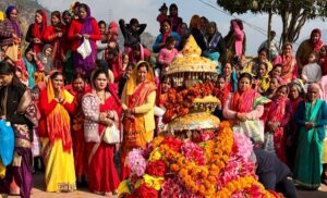 ऊखीमठ : कालीमठ घाटी के शीर्ष पर प्रकृति की सुरम्य वादियों में जगत कल्याण के लिए तपस्यारत भगवती चामुण्डा की देवरा दिवारा यात्रा रात्रि प्रवास के लिए डमार गांव पहुंचने पर ग्रामीणों ने भव्य स्वागत किया जबकि फेगू गांव में भगवती चामुण्डा व भगवती दुर्गा के 15 वर्षों बाद ऐतिहासिक मिलन के साक्षी हजारों ग्रामीण बने।