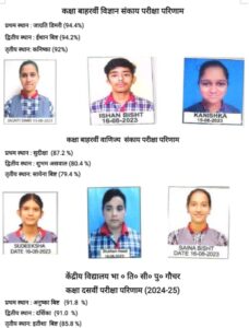 कक्षा 12 वीं साइंस संकाय में जाग्रति डिमरी ने 94 . 4 प्रतिशत अंक के साथ प्रथम स्थान, ईशान बिष्ट ने 94 .2 प्रतिशत अंक के साथ द्वितीय व कनिष्का ने 92 प्रतिशत अंक के साथ तृतीय स्थान प्राप्त किया। वहीं वाणिज्य विषय संकाय में सुदीक्षा ने 87. 2 प्रतिशत अंक के साथ प्रथम, शुभम असवाल ने 80 . 4 प्रतिशत अंक के साथ द्वितीय व सायेना बिष्ट ने 79 . 4 प्रतिशत अंक के साथ तृतीय रही।
