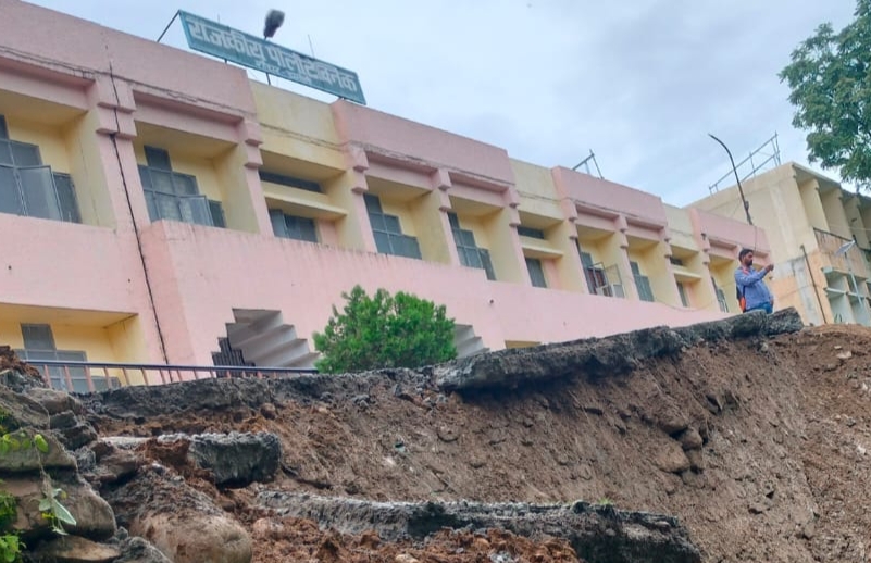 गौचर : क्षेत्र में हो रही लगातार मूसलाधार बारिश से सड़कों के साथ ही सरकारी व गैर-सरकारी संपतियों को भारी नुक्सान पहुंचा है। करोड़ों की लागत से बना राजकीय पालीटेक्निक के आगे भूस्खलन होने से भवन खतरे की जद में आ गया है।