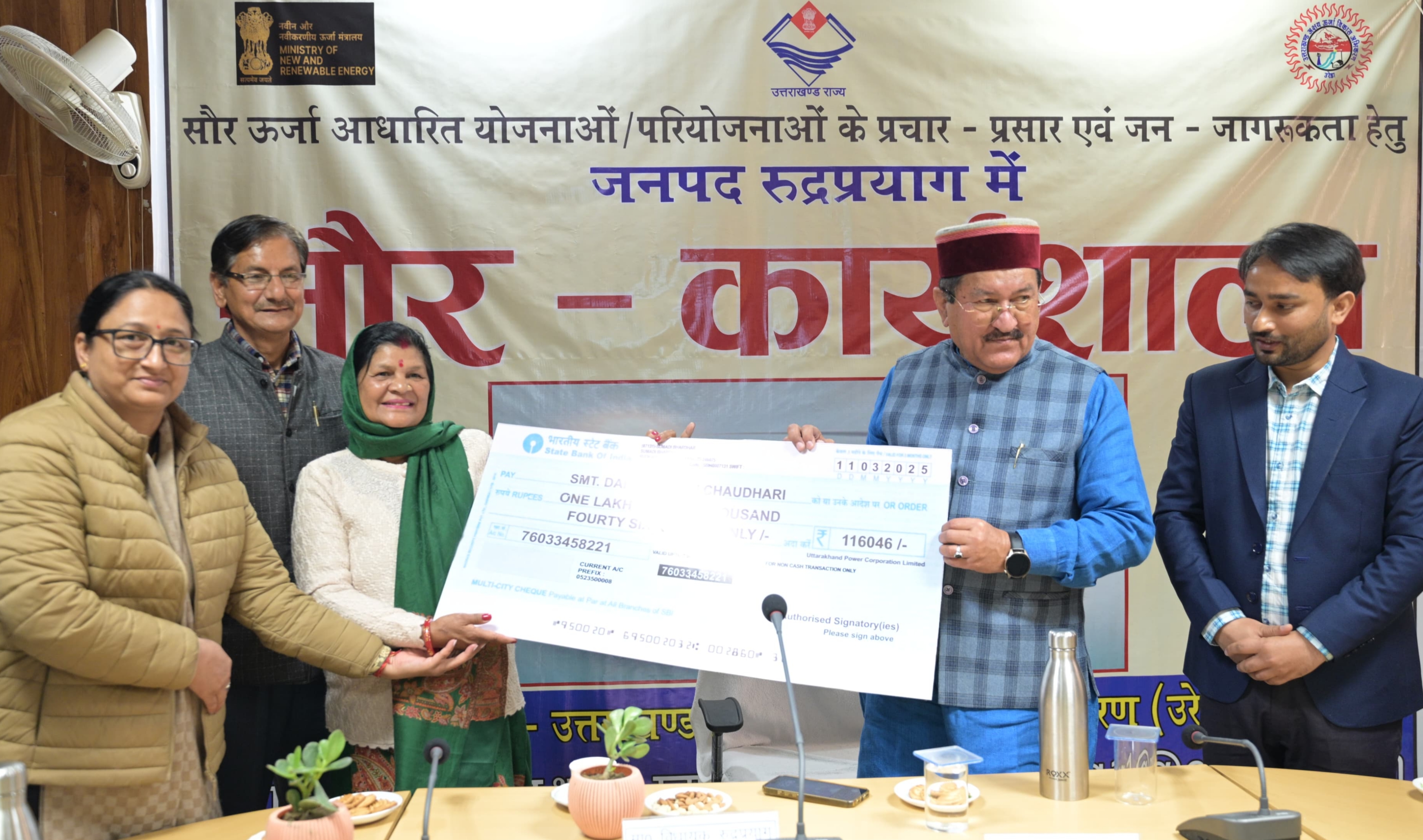कार्यक्रम में बतौर मुख्य अतिथि शामिल हुए विधायक श्री भरत सिंह चौधरी ने सरकार की योजनाओं के अंतर्गत लाभ प्राप्त कर रहे लोगों को प्रोत्साहित किया। उन्होंने मुख्यमंत्री सौर स्वरोजगार योजना के तहत भरत भूषण (निवासी बसुकेदार), शुभम रौथाण (निवासी कांडई), मर्गागी रावत (निवासी कांडई) सहित अन्य लाभार्थियों को प्रशस्ति पत्र वितरित किए।इसके साथ ही प्रधानमंत्री सूर्य घर योजना के तहत लाभार्थियों को ₹51,000 की आर्थिक सहायता राशि के चेक भी प्रदान किए गए।इसके साथ ही दर्शनी देवी द्वारा लगाए गये 200 किलोवाट सौर संयंत्र से हुई आय का 1 लाख 60 का चैक भी प्रदान किया गया। इस अवसर पर विधायक रुद्रप्रयाग भरत सिंह चौधरी ने कहा कि सौर ऊर्जा न केवल पर्यावरण संरक्षण बल्कि आर्थिक विकास का भी मुख्य साधन है। उन्होंने बताया कि राज्य सरकार नवीन एवं नवीकरणीय ऊर्जा स्रोतों को बढ़ावा देने के लिए कई योजनाएं चला रही है, जिससे आम जनता को सस्ती और स्थायी ऊर्जा उपलब्ध कराई जा सके। उन्होंने कहा की सौर ऊर्जा से ग्रामीण क्षेत्रों में रोजगार के नए अवसर भी खुलेंगे। सरकार द्वारा दी जाने वाली सब्सिडी और अन्य लाभों का अधिक से अधिक लोगों को फायदा उठाना चाहिए, जिससे वे आत्मनिर्भर बन सकें और अपनी ऊर्जा आवश्यकताओं को खुद पूरा कर सकें।कार्यक्रम में विधायक श्री भरत सिंह चौधरी ने सौर ऊर्जा प्रचार-प्रसार वाहनों को हरी झंडी दिखाकर रवाना किया।ये वाहन जनपद के तीनों विकासखंडों के ग्रामीण क्षेत्रों में जाकर सौर ऊर्जा योजनाओं की जानकारी देंगे और ग्रामीणों को सौर ऊर्जा अपनाने के लिए प्रेरित करेंगे।उन्होंने इस दौरान कहा कि ग्रामीण क्षेत्रों में सौर ऊर्जा को बढ़ावा देने के लिए प्रचार अभियान बेहद जरूरी है। सरकार की योजनाओं के बारे में सही जानकारी मिलने पर अधिक लोग इसका लाभ उठा सकेंगे और सौर ऊर्जा को अपनाकर आत्मनिर्भर बन सकेंगे।![]()