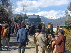 ऊखीमठ : पंचायत रुद्रपुर की गोचर भूमि पर पिटकुल द्वारा तथाकथित अवैध निर्माण कार्य हटाने को लेकर क्षेत्रीय जनता ने घंटों सड़क जाम कर सरकार और पुलिस प्रशासन के विरोध जमकर नारेबाजी की। इस दौरान पुलिस कर्मी, प्रशासन के नुमाइंदों और आक्रोशित जनता के बीच जमकर नोंक-झोंक और धक्कामुक्की भी हुई। आक्रोशित महिलाओं को पुलिस कर्मियों ने पकड़ कर जबरदस्ती पुलिस वाहनों में बिठाया, जिससे आक्रोशित अन्य महिलाओं ने गुप्तकाशी जाखधार मोटर मार्ग को रुद्रपुर के निकट बड़े-बड़े बोल्डर रखकर सड़क जाम किया, समाचार लिखे जाने तक इस मार्ग पर आवाजाही बंद है। पुलिस वाहनों में महिलाएं प्रशासन के विरुद्ध जमकर नारेबाजी कर रही है, वहीं राइका से रुद्रपुर के बीच मोटर मार्ग छावनी में तब्दील की गयी थी।